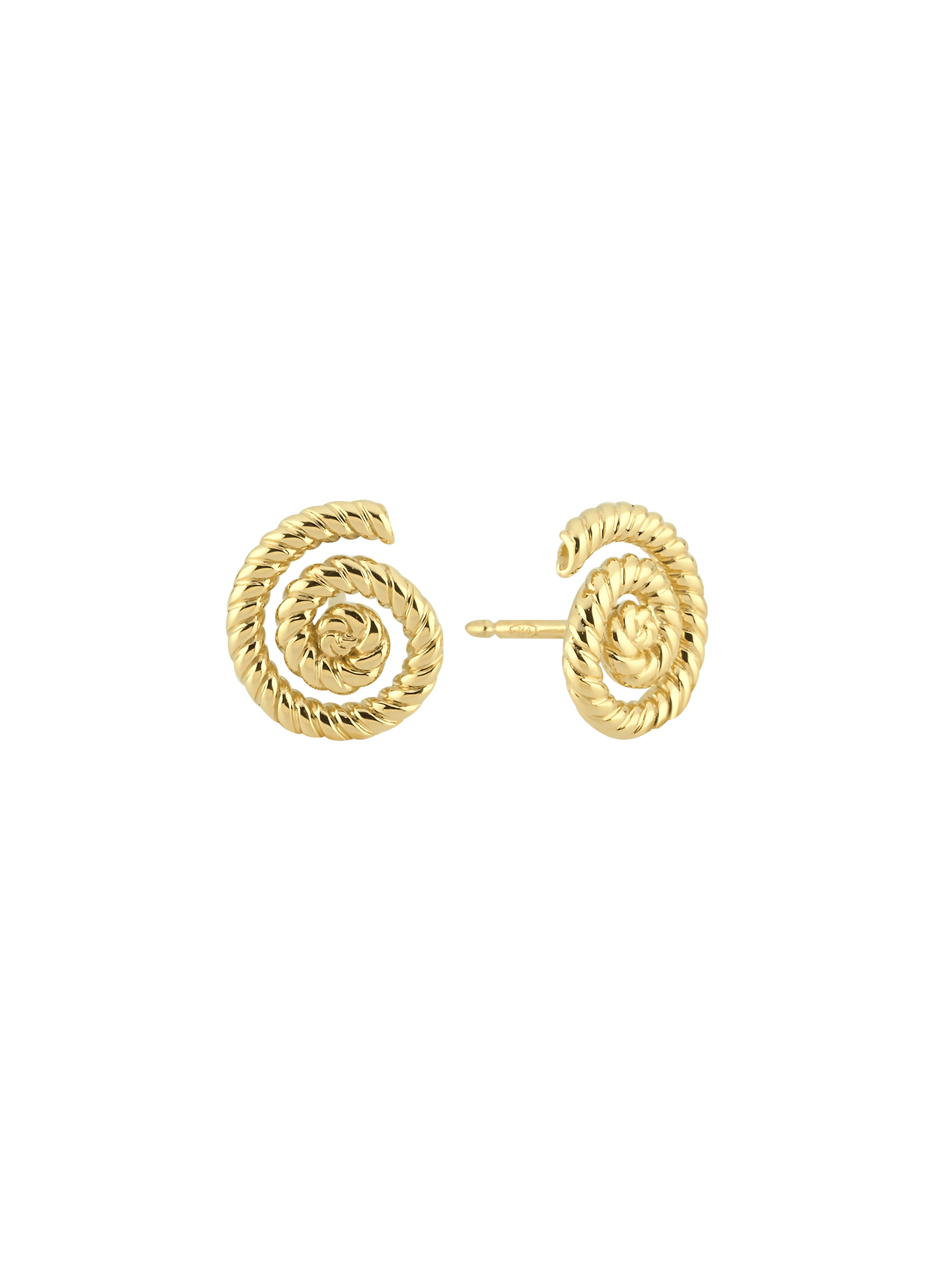 〝These striking studs are sure to bewitch, as a delicate rope of gold spirals in the small Hypnosis Swirl earrings. Bold Ascher elegance, in the finest of forms.〞