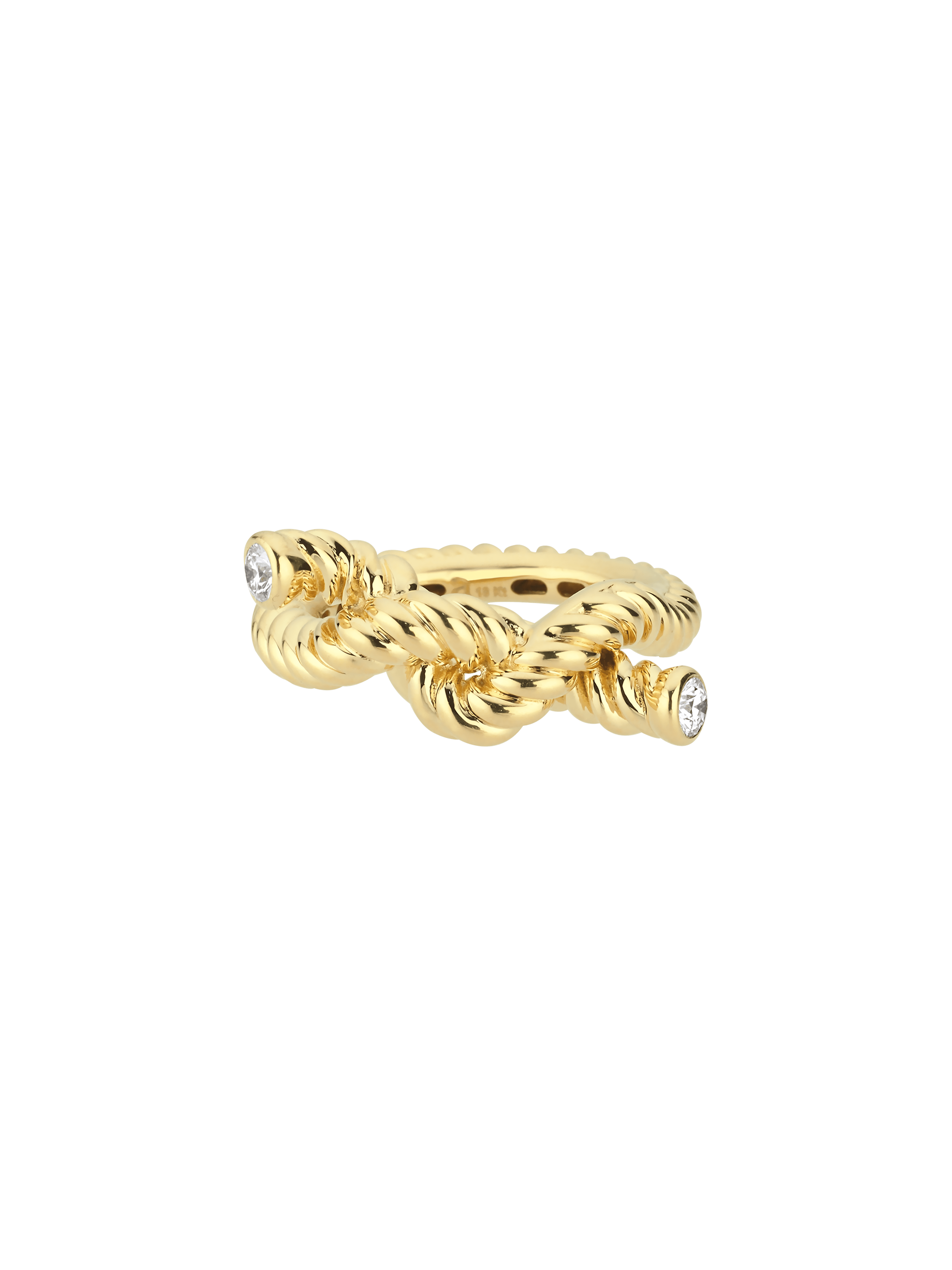 〝Knotted around the finger like a forget-me-not thread, the Knoti Twist ring by Ascher is a strong shape with a hint of whimsy, finished with two diamonds in the perfect expression of designer Shouq Al-Fujail’s love for all that’s bold and beautiful. 〞