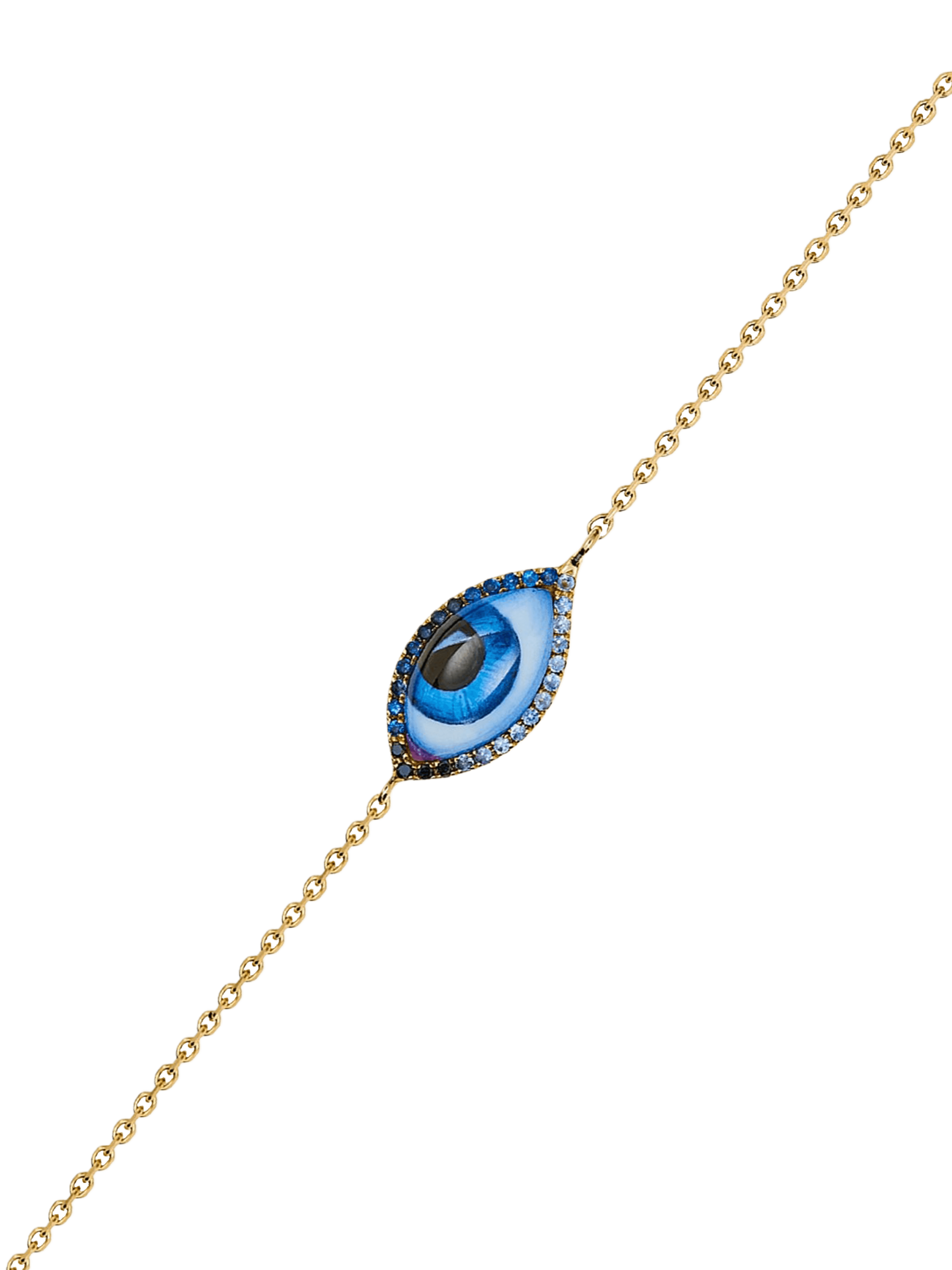 〝The hand-painted enamel Petit Bleu eye bracelet has been emblematic of Lito’s jewelry since her Tu Es Partout collection launched, elevating a traditional Mediterranean amulet to precious adornment.〞