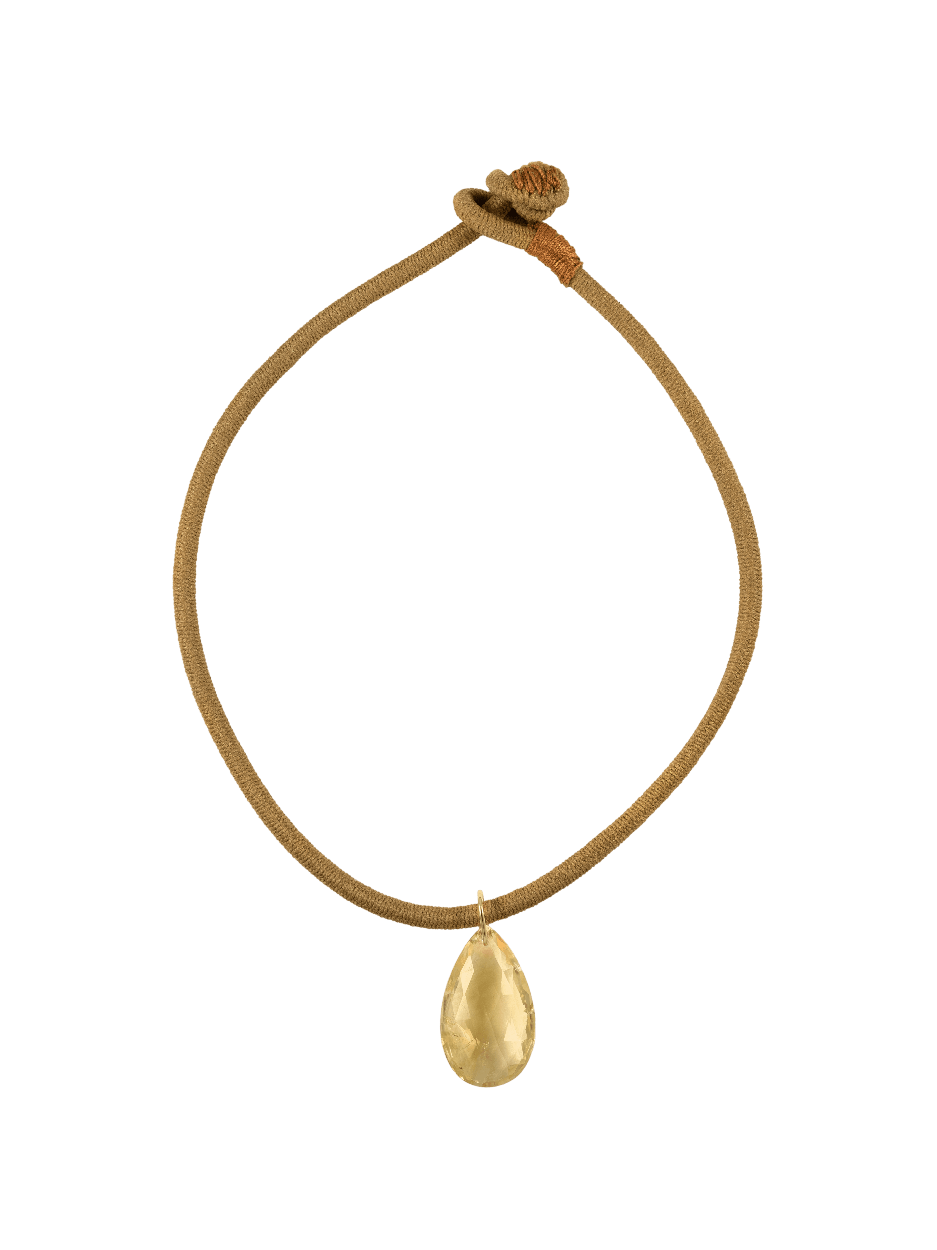 Drop Chocolate Brown Cord Necklace with Sunset Citrine