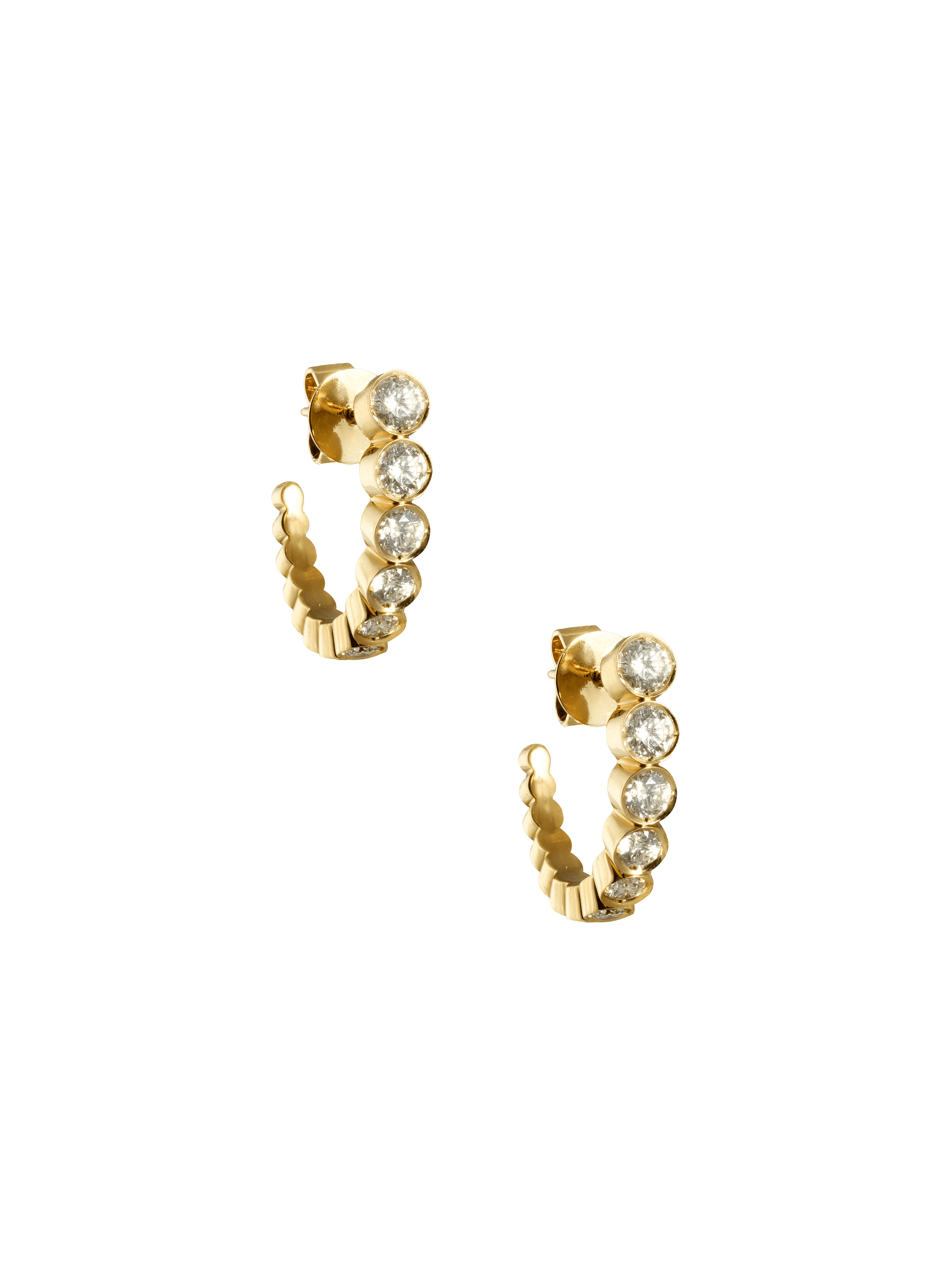 〝Sophie Bille Brahe’s Boucle Ensemble earrings are a reworking of her iconic Croissant motif, into graceful diamond curves that dress the lobes elegantly.〞